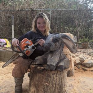 Wood Carver Brittny Hughes with Brittny’s Chainsaw Art