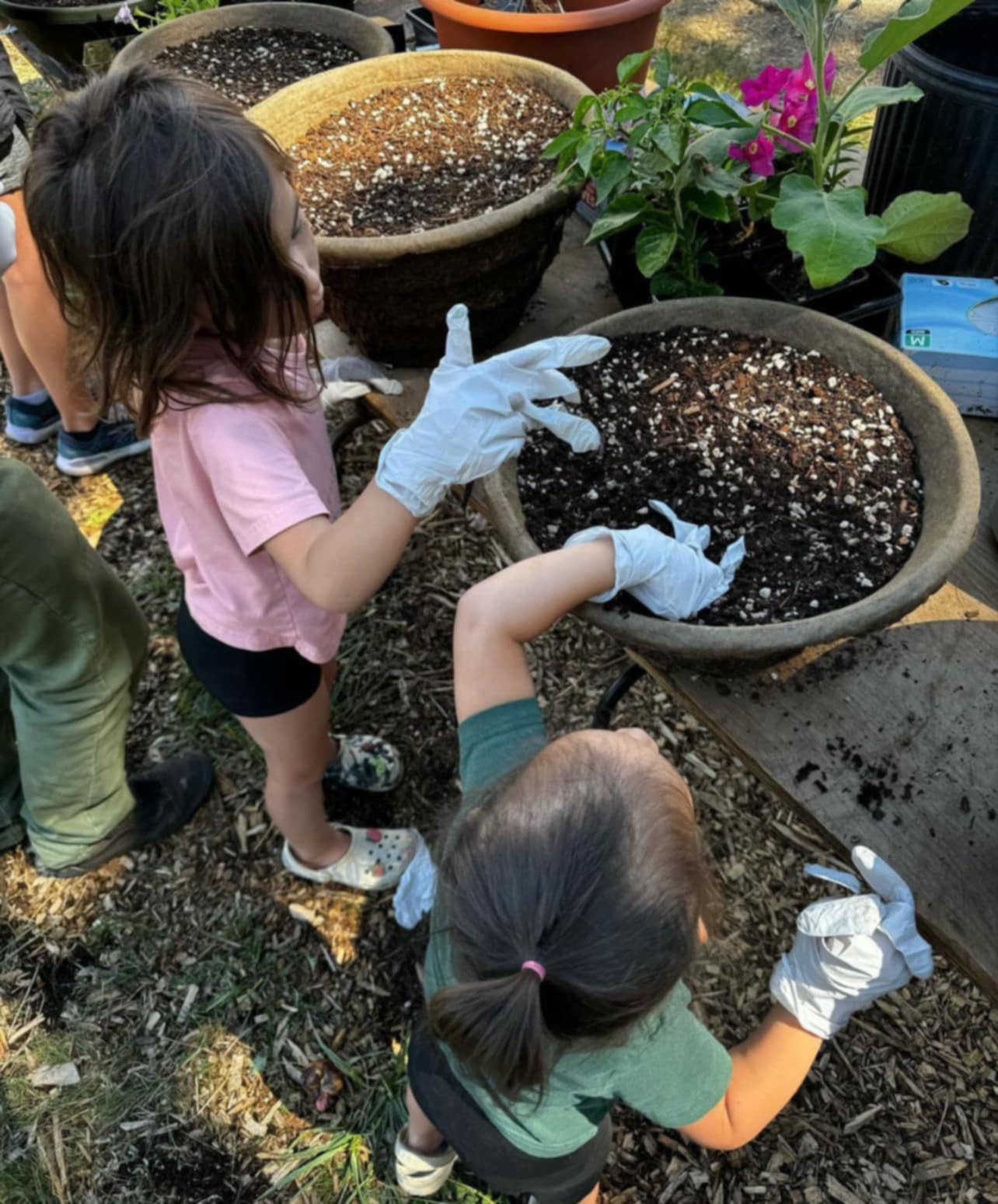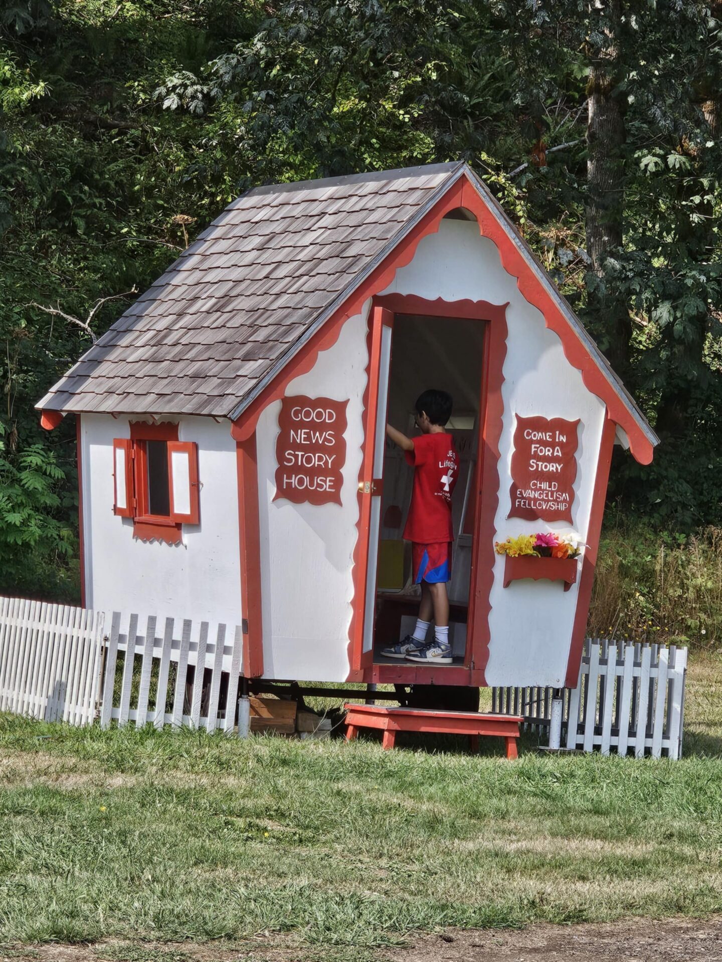 • Log house plants, Greg Lee, shaded area with water/tables/garbage can